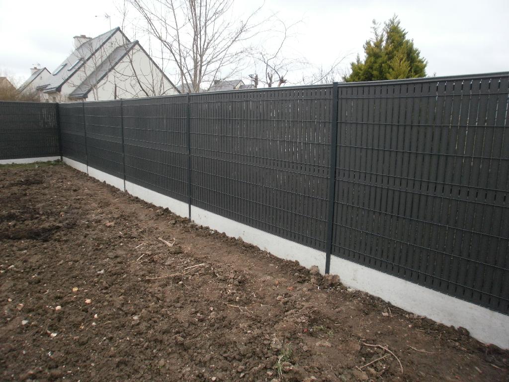 mise en place d'une clôture rigide avec plaque ciment de soubassement et lames PVC d'occultations sur la commune de Lamballe